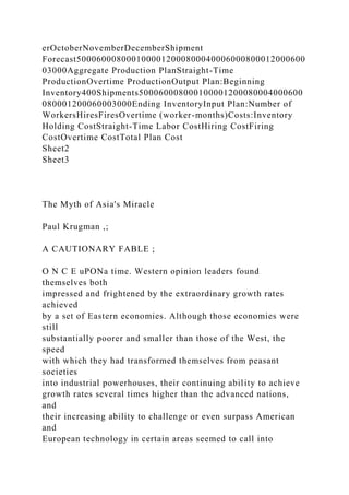 The document outlines an assignment requiring students to complete two problems related to cost analysis and production planning using Microsoft Excel, with specific instructions on submission and file handling. Additionally, it summarizes Paul Krugman's analysis on the myth of rapid economic growth in Asian economies, drawing parallels with past misconceptions about Soviet economic performance, ultimately arguing that the growth in these economies may be overstated and unsustainable. The document emphasizes the importance of distinguishing between growth driven by input increases versus efficiency improvements.