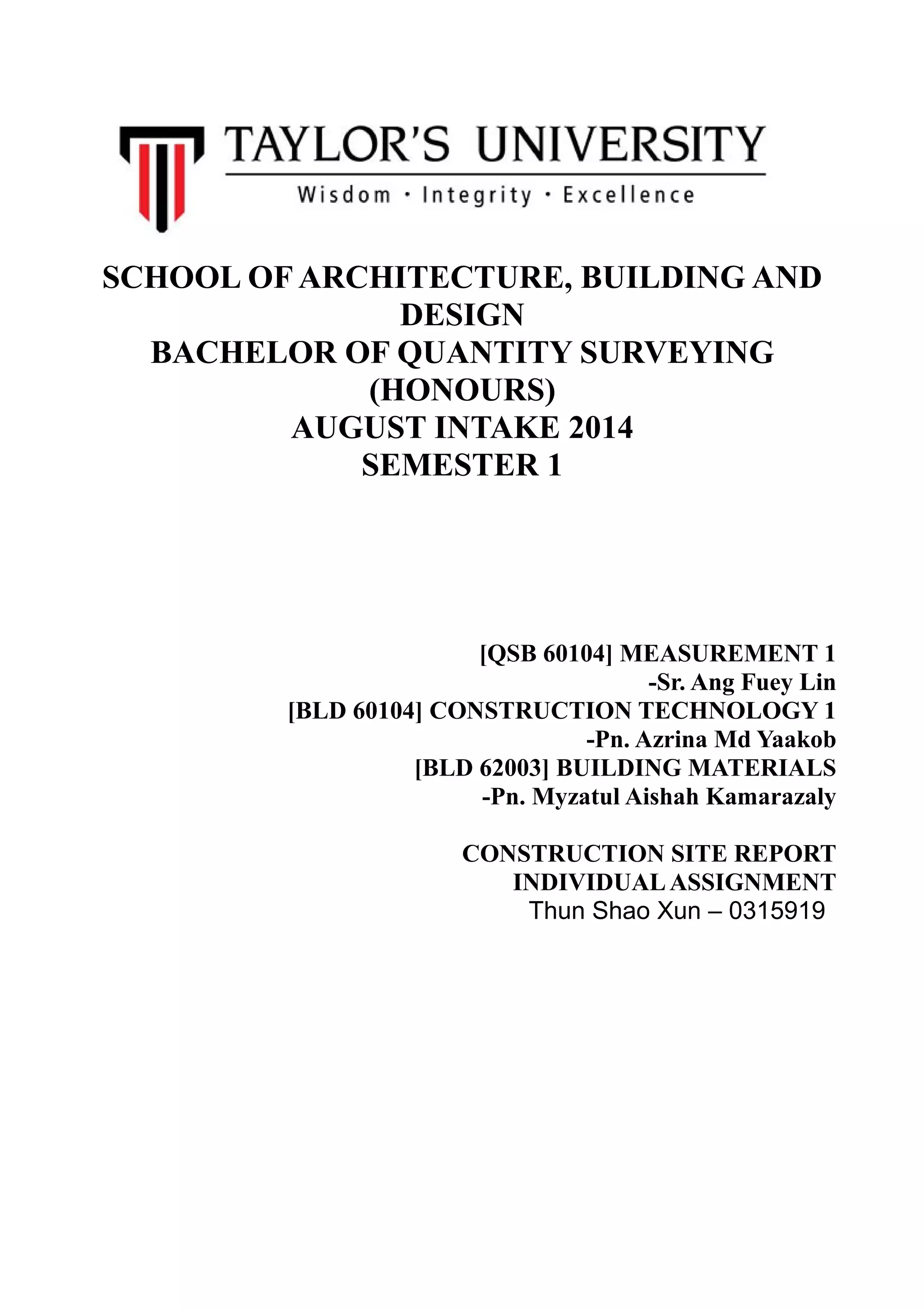 This construction site visit report summarizes a visit by students to the D'Latour construction site in Bandar Sunway, Selangor, Malaysia. The report describes the objectives of the visit which were to experience the construction site environment, understand safety procedures, visualize building materials and processes, and gain knowledge of machinery uses. Key observations from the site include the building foundations consisting of micropiles, use of post-tensioning and scaffolding, storage of materials, and different formwork types including timber, table, and steel forms. Photos document various construction elements, equipment, and the group visiting the site.