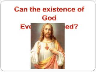 This document outlines a 3 episode series exploring arguments for and against the existence of God from different perspectives. Episode 1 examines William Paley's clock analogy argument and criticisms of it, along with interviews of people with different views on God's existence. Episode 2 looks at explanations of God from various world religions and Descartes' view. Episode 3 features interviews with people who have had religious experiences and concludes with statistics on belief in God and a quote about the existence of a creator.