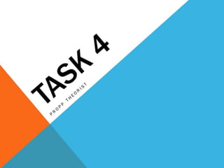 The document discusses several literary and film theories for analyzing narratives, including Todorov's 5 stages of narrative structure, Barthes' codes for audience anticipation, Propp's 7 character spheres of action, and concepts like diegesis and narrative range. Todorov's stages are outlined as equilibrium, disequilibrium, recognition of disequilibrium, attempt to repair disequilibrium, and new equilibrium. Examples applying several theories are provided from films like Mean Girls, Spiderman, and The Hunger Games.