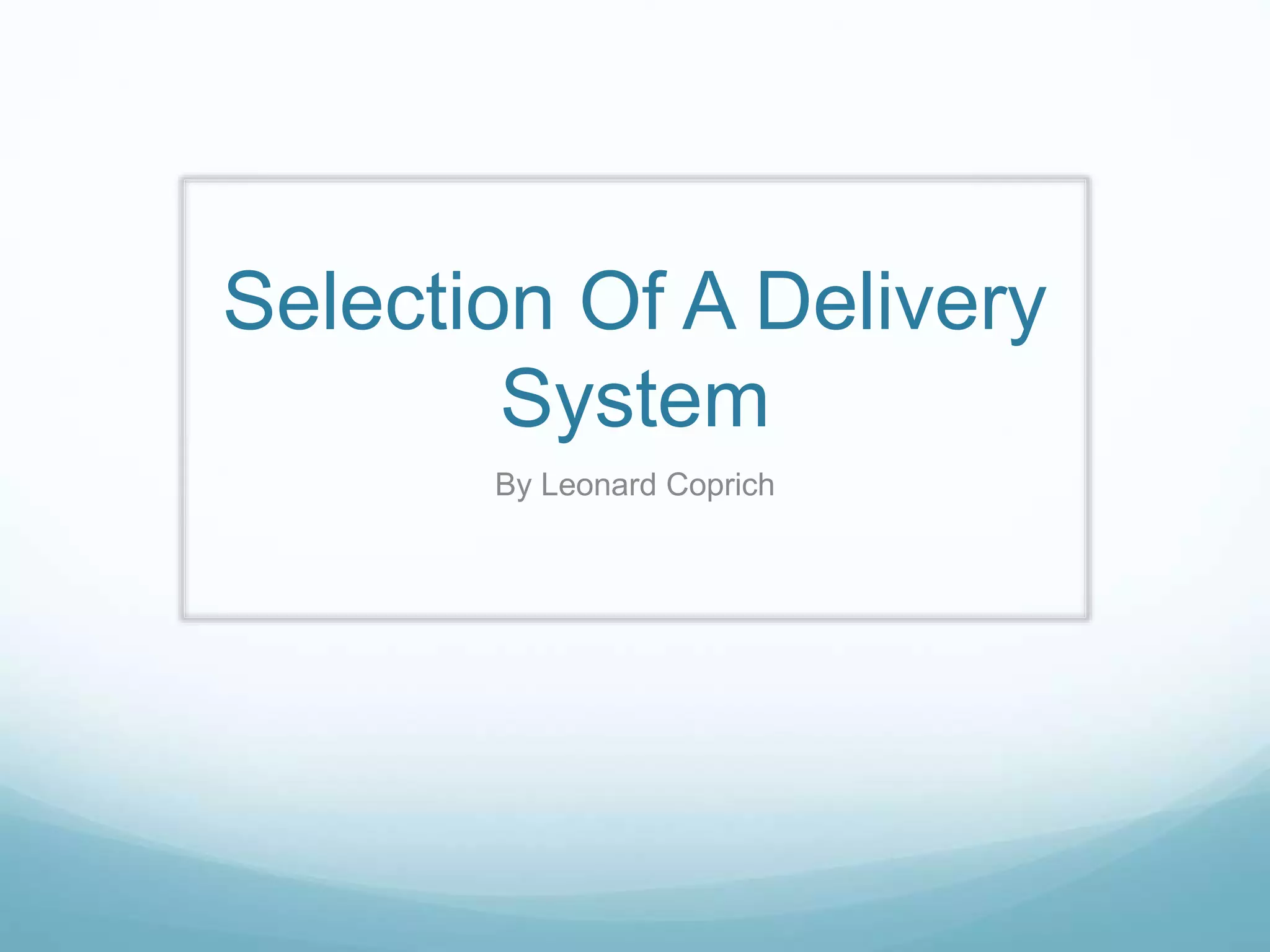 The document discusses considerations for selecting an instructional delivery system and media. It describes how the delivery system is the overall methodology for managing and delivering teaching and learning activities. Examples of delivery systems include classroom, lecture, correspondence, videotape, and web-based. Media refers to the physical elements learners interact with, like videos or simulations. The selection of delivery system and media should be based on learning objectives and domains. Different media are suited for verbal information, intellectual skills, psychomotor skills, and attitudes. Both internal learner factors and external environmental factors must also be considered.