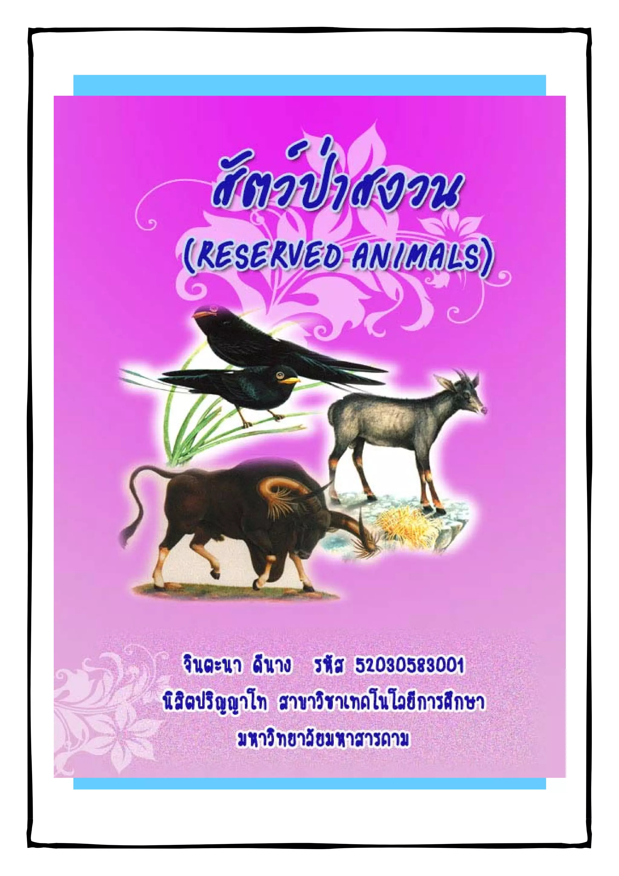หนังสือเล่มเล็ก เรื่อง สัตว์ป่าสงวน โดย จินตะนา ดีนาง 52030583001 เทคโนโลยีการศึกษา พ.22 อุดรธานี