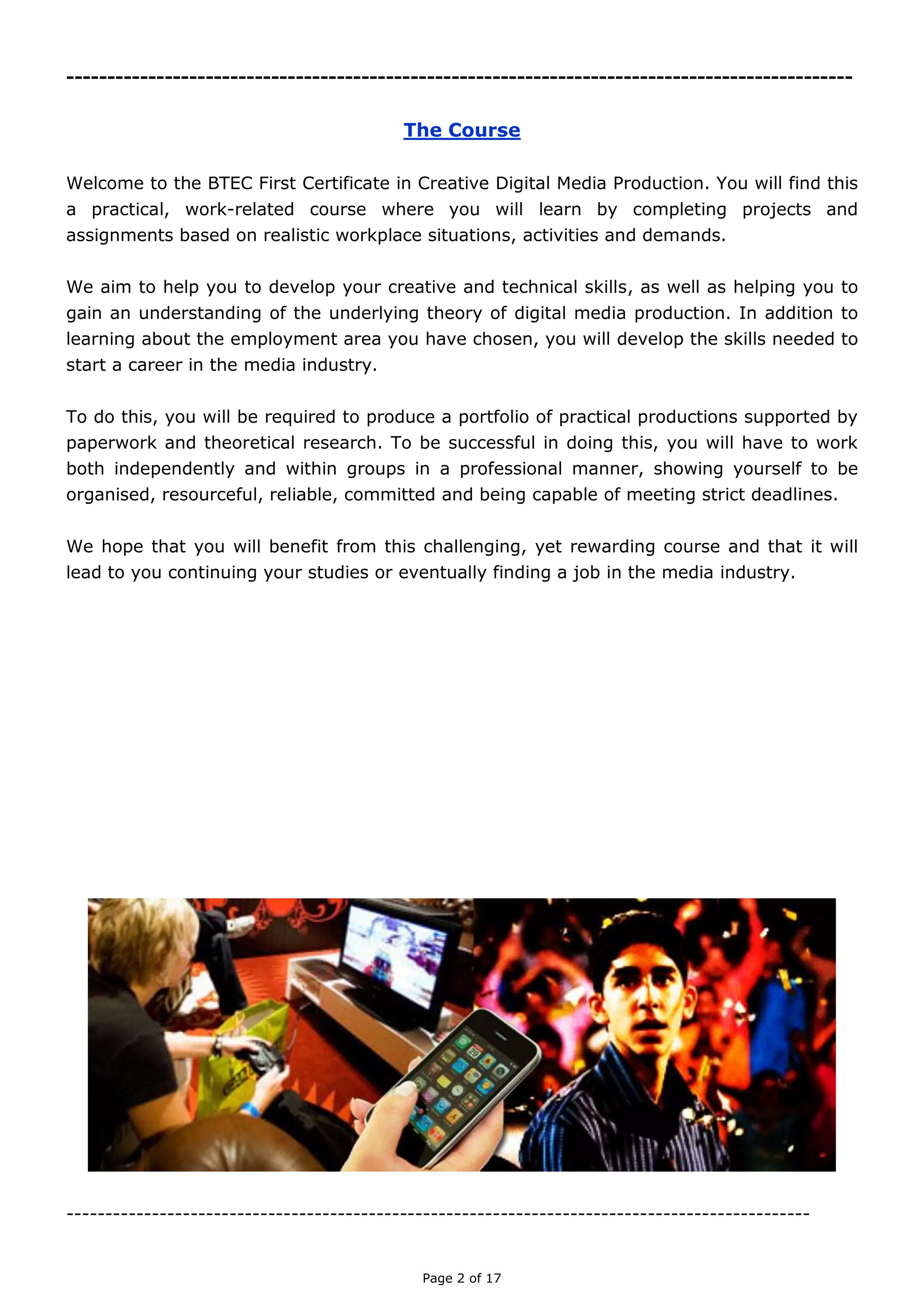 This document outlines two units for a BTEC Level One/Two course in Creative Digital Media Production: