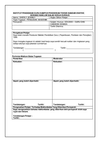 Dokumen ini adalah tugasan akademik oleh Sherly Jewinly mengenai kepimpinan guru, yang menitikberatkan ciri-ciri profesional seorang guru yang cemerlang iaitu Cikgu Mohd Sirhajwan Idek. Tugas ini juga mencakup penghargaan kepada individu yang membantu dalam penulisan, serta perbincangan mendalam tentang konsep pengajaran dan profesionalisme dalam bidang pendidikan. Disertakan juga maklumat tentang keperluan etika dan akauntabiliti bagi seorang guru dalam melaksanakan tugas mereka.