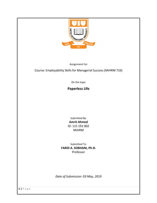 This document provides an overview of paperless life and business. It begins with defining paperless life as exchanging printing pages for digital documents. It then lists some tips for going paperless like using online banking, digital billing, and ebooks. The benefits discussed include cost savings, data security, and being environmentally friendly. Examples are given of companies that have successfully implemented paperless systems like Keep Truckin, Maxwell Health, and Capillary Technologies. The pros and cons of paperless systems are weighed.