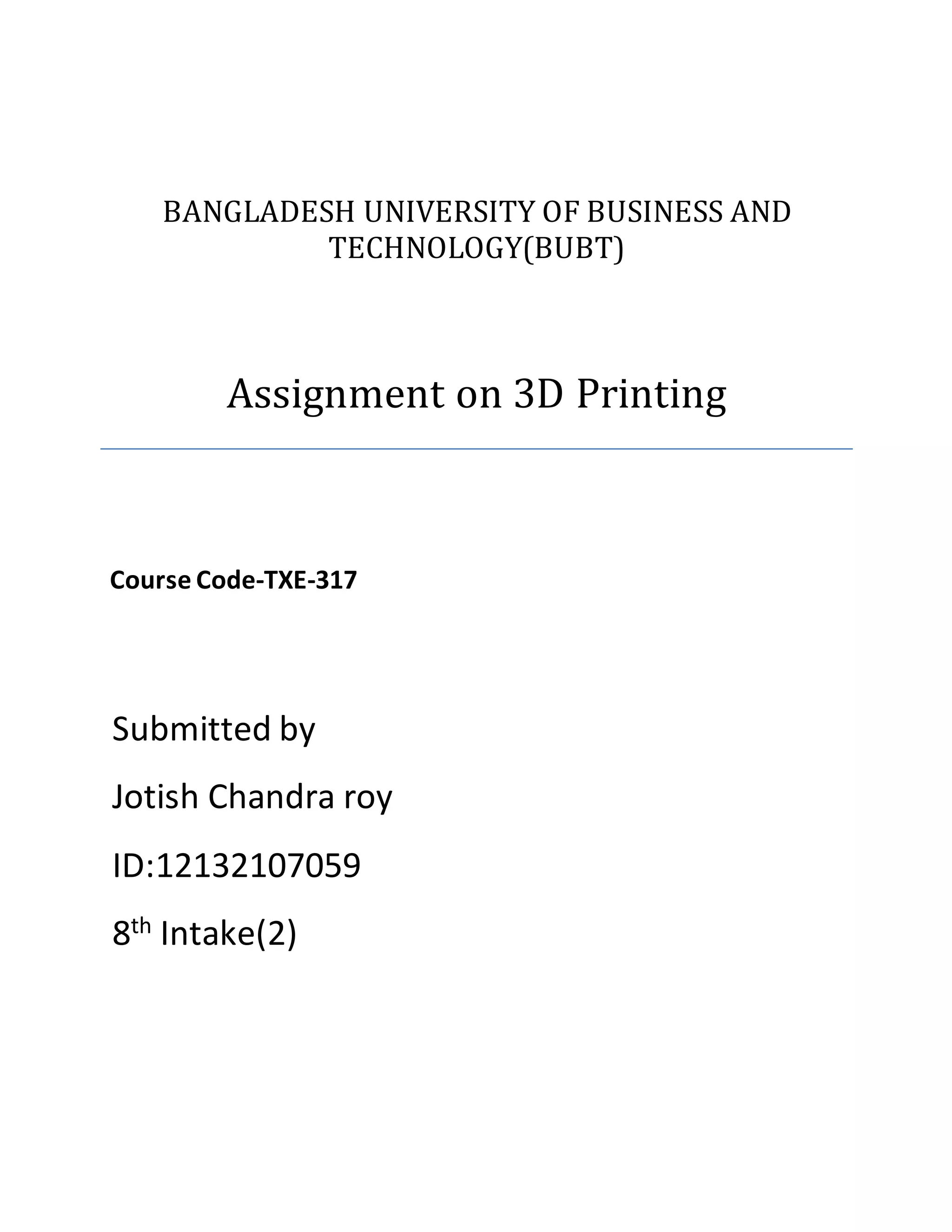 This document discusses 3D printing, including how it works, the different processes and technologies involved, and examples of applications. It begins by explaining that 3D printing involves creating 3D objects by laying down successive layers of material using additive processes based on a digital file. It then describes the main technologies like stereolithography, fused deposition modeling, and selective laser sintering that work by melting or curing materials layer by layer. Finally, it outlines examples of 3D printing applications and discusses the growth of the 3D printing industry.