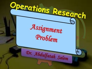 The document discusses the assignment problem and provides examples of solving it using different methods. It can be summarized as: