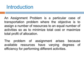 The document discusses solving an assignment problem to minimize crew waiting time for an airline with flights between Delhi and Kolkata. It involves: