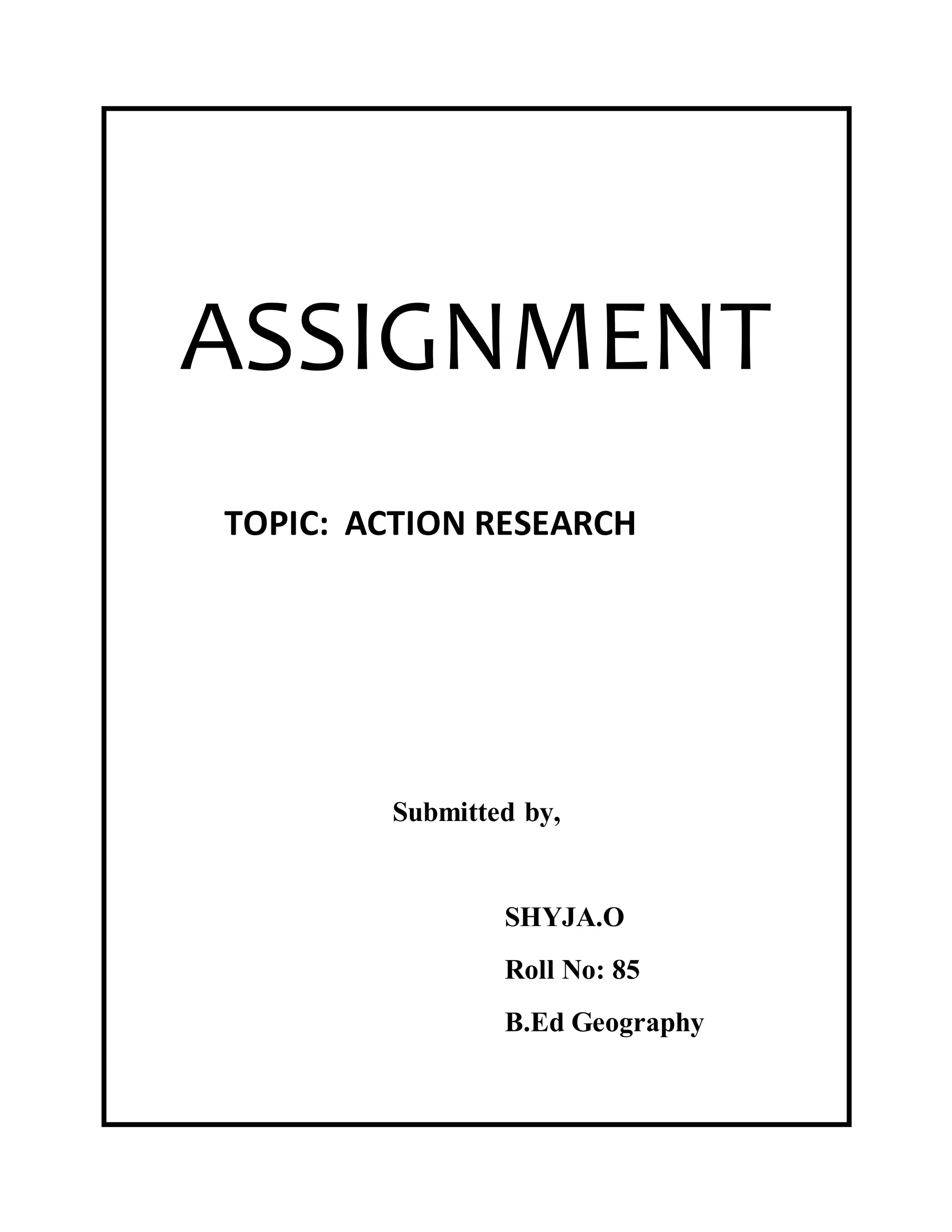 This document discusses action research, which is a type of research conducted by teachers to address specific problems in their classrooms. It cannot not be addressed through normal strategies. Action research is meant to find scientific solutions for complicated problems through a process conducted by, for, and of the teacher. This includes identifying issues, analyzing causes, developing hypotheses to address them, designing tests of the hypotheses, and drawing conclusions to modify practices and solve the original problem. The goal is to empower teachers to study classroom problems scientifically and make evidence-based decisions.
