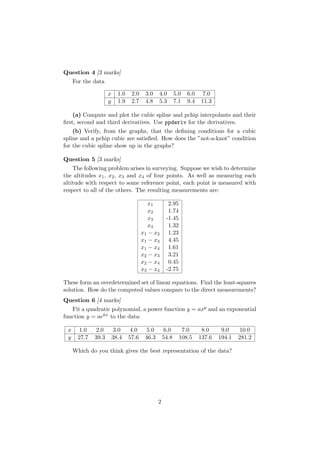 This document outlines 6 questions for a math assignment on various interpolation techniques: