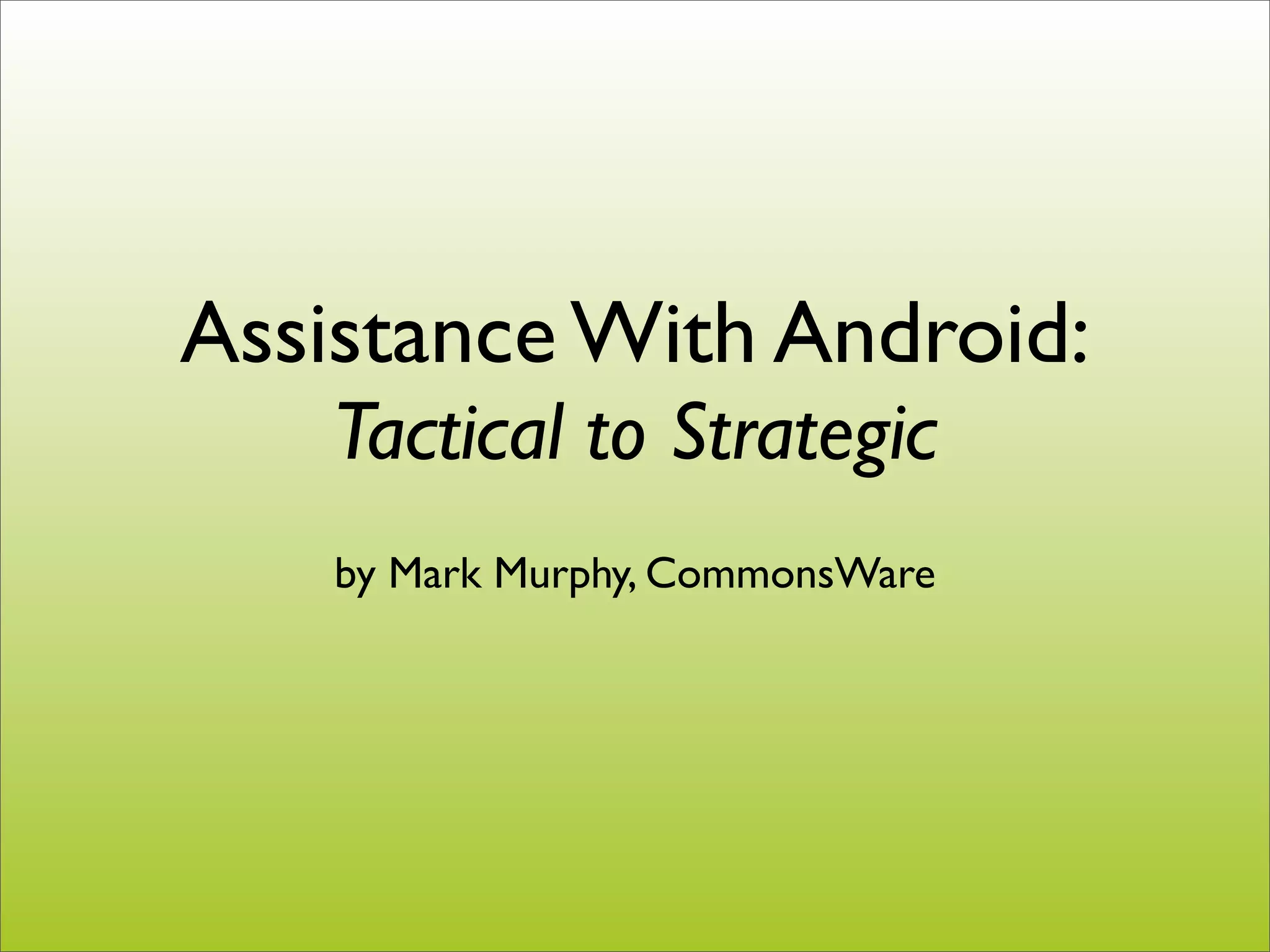 The document provides insights into obtaining assistance for Android development, emphasizing the need for both tactical and strategic support depending on whether one is an engineer or a manager. It outlines various resources like Google Groups, Stack Overflow, and IRC, and offers tips on effective communication and question-asking to facilitate assistance. Additionally, it covers the types of support needed in areas such as device firmware, security, app preloads, and developer relations, while also recommending approaches for successful collaboration and achieving goals in the Android ecosystem.
