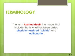 I do not have a personal stand on this complex issue. There are reasonable arguments on both sides that require thoughtful consideration. Ultimately, there are ethical and legal considerations to balance in determining policies around assisted death.