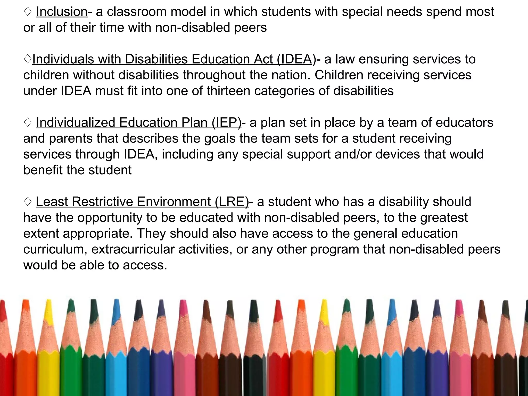 This document defines key terms related to assistive technology and inclusion of students with disabilities. It discusses assistive technologies and instructional practices for students with ADHD, auditory disabilities, and learning disabilities. Examples of assistive technologies include notebook organizers, hearing aids, reading aids, and math manipulatives. The document provides resources for further information.
