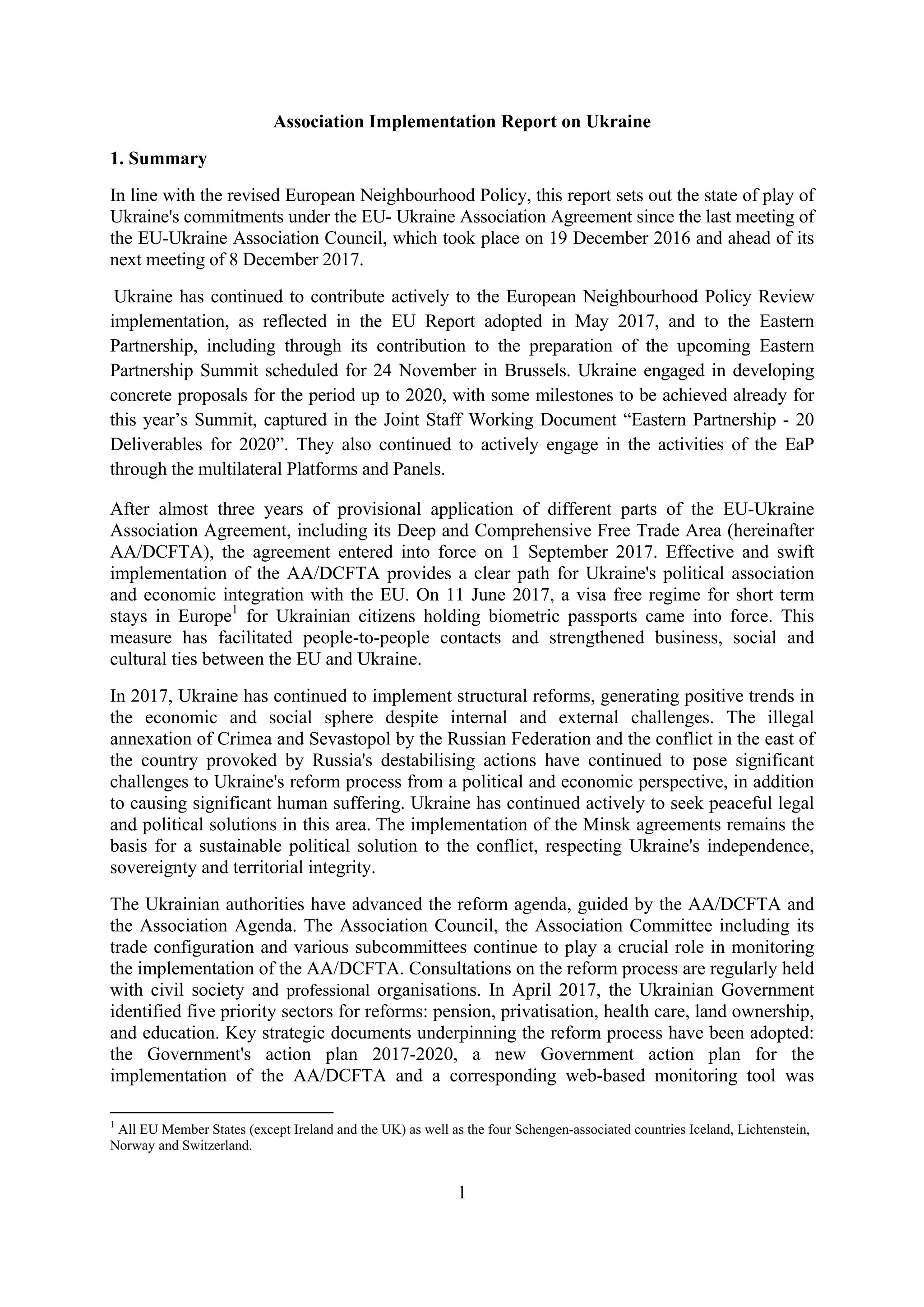 1) Ukraine has continued implementing reforms guided by the EU-Ukraine Association Agreement, though challenges remain, especially regarding corruption and the conflict in eastern Ukraine.