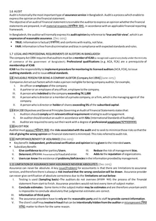 This document discusses the concept of assurance engagements and the audit process. It defines an assurance engagement as one where a practitioner expresses a conclusion to enhance the degree of confidence of intended users in the subject matter against established criteria. Key elements of assurance engagements include a subject matter, suitable criteria, evidence, and a written report. Assurance can be either reasonable or limited depending on the evidence obtained. The document also discusses planning an audit, including developing an audit strategy and audit plan to effectively carry out procedures and obtain sufficient evidence. It emphasizes the importance of understanding the entity and its environment.
