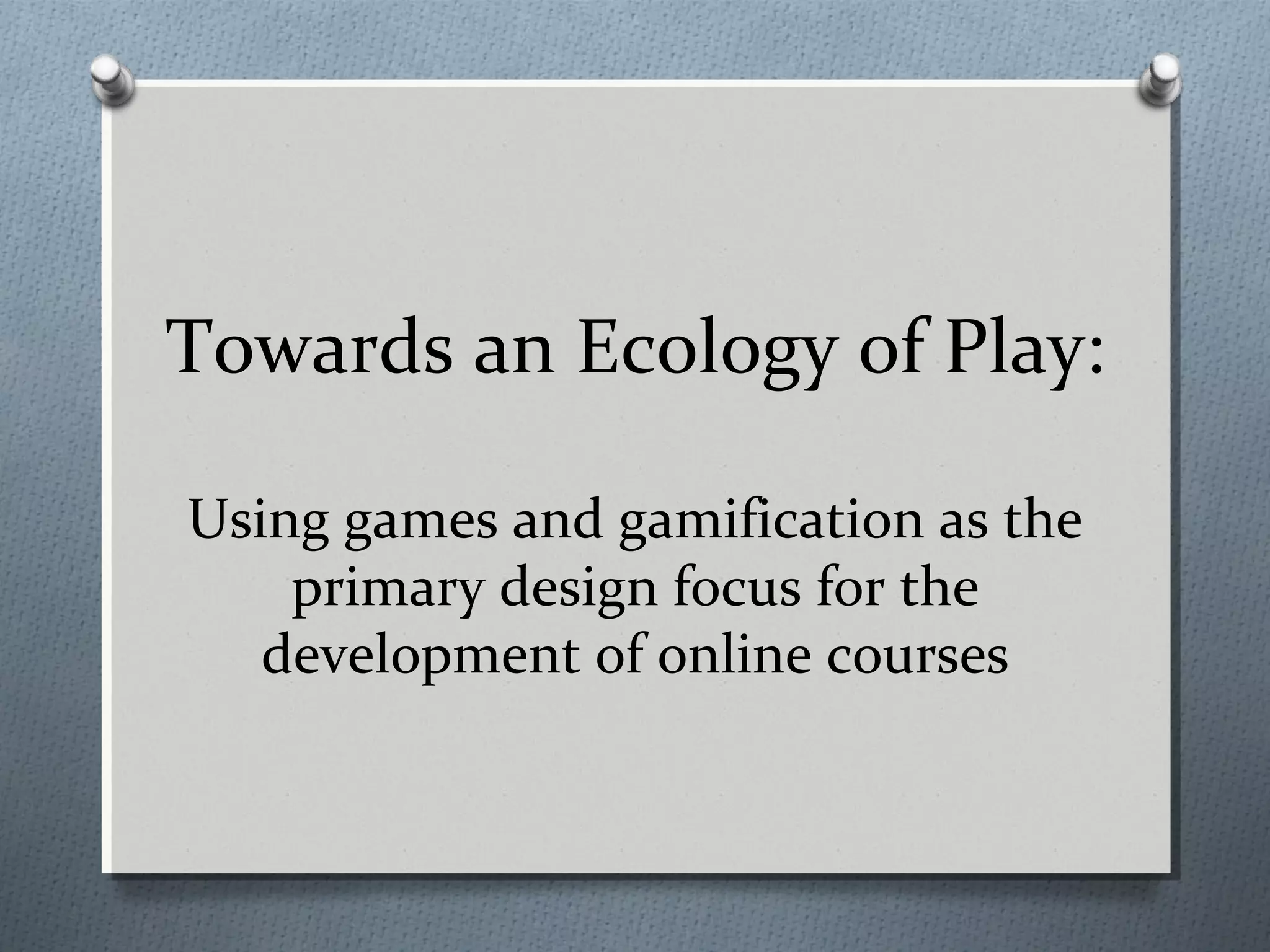 This document discusses using games and gamification as the primary design focus for developing online courses. It argues that play is how humans naturally learn and that games are expressions of play that can be practical for learning. Gamification, which is applying game elements in non-game settings, is proposed as an instructional design strategy that can increase engagement, assessment, and retention when applied holistically. The document explores various game mechanics, elements, and psychological principles that make gamification an effective approach.