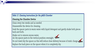 - Common inhaler devices include pressurized metered dose inhalers, dry powder inhalers, and soft mist inhalers. Proper priming, shaking, exhal