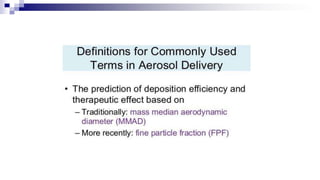 - Factors like particle size, inspiratory flow, and inhaler technique affect lung deposition and treatment effectiveness.