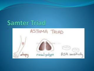 This document discusses expanding understanding of asthma phenotypes. It defines 9 asthma phenotypes in 3 categories: trigger-induced (allergic, non-allergic, aspirin-exacerbated respiratory disease, infection, exercise-induced), clinical presentation (pre-asthma wheezing in infants, exacerbation-prone), and inflammatory markers (eosinophilic and neutrophilic). Specific phenotypes like allergic asthma are more common in children while non-allergic asthma is more severe. Defining phenotypes enhances research by allowing appropriate study comparisons and correlating phenotypes with genotypes.