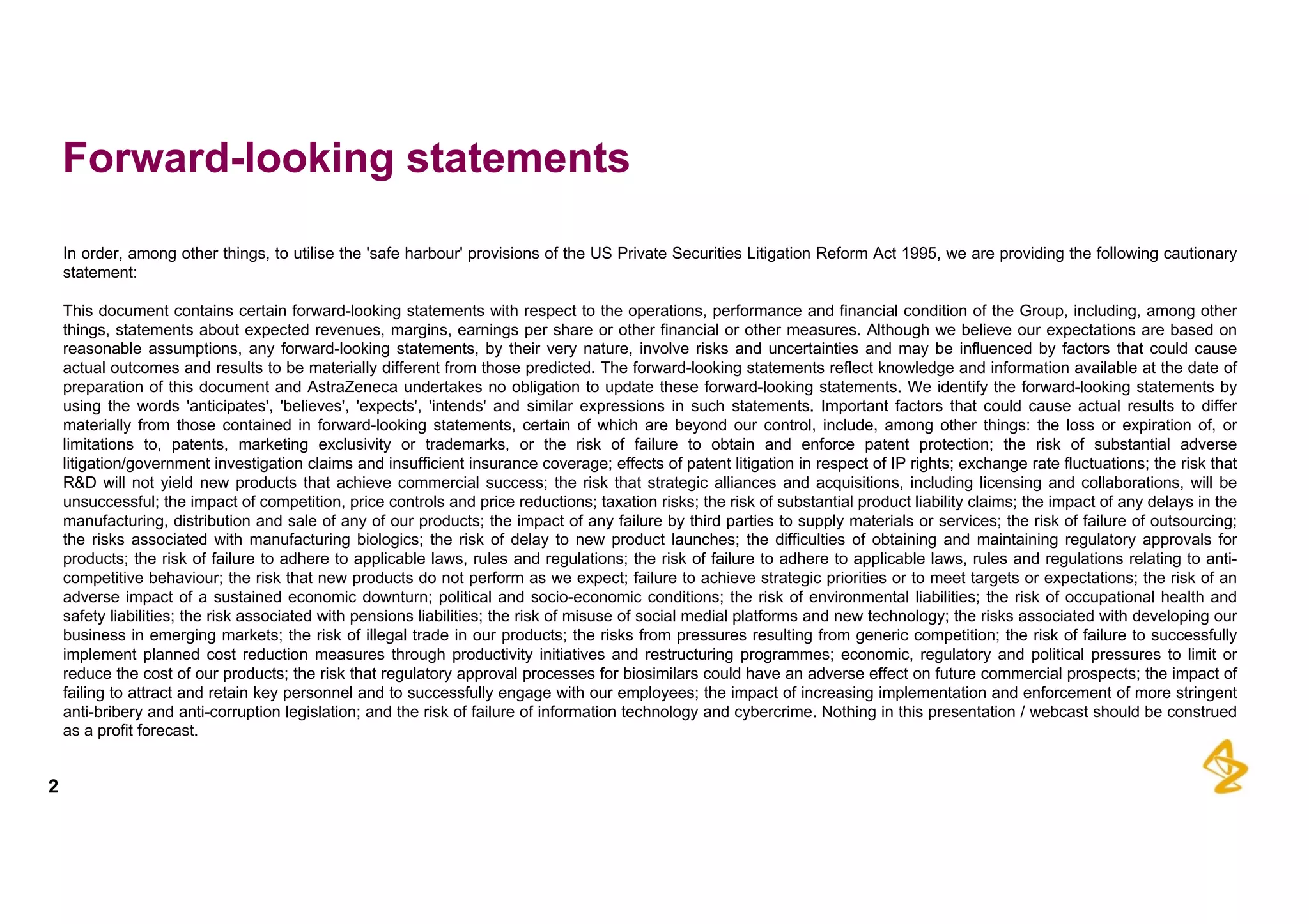 The document provides an overview of AstraZeneca's full-year and Q4 2016 results presentation. It notes that total revenue was primarily impacted by generic competition for Crestor and the tail-end of Nexium's loss of exclusivity in the US. The "New AstraZeneca" grew by 6% in FY 2016 and Q4, led by growth in Emerging Markets, Symbicort, and Farxiga. EPS was supported by cost management. 2017 guidance forecasts low-to-mid single digit revenue decline and low-to-mid teens decline in core EPS. The presentation highlights pipeline progress including regulatory filings for Tagrisso, Durvalumab and Faslodex.