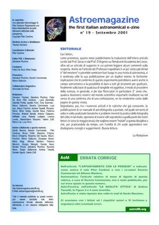 Il numero di settembre 2001 di Astroemagazine include articoli su vari temi astronomici, comprese osservazioni su batteri fossili e astrofotografia. Viene presentata anche una traduzione di un articolo scientifico riguardante implicazioni per la comunità astronomica. Il numero contiene notizie, annunci e l'almanacco con i dettagli sulle osservazioni astronomiche per il mese.