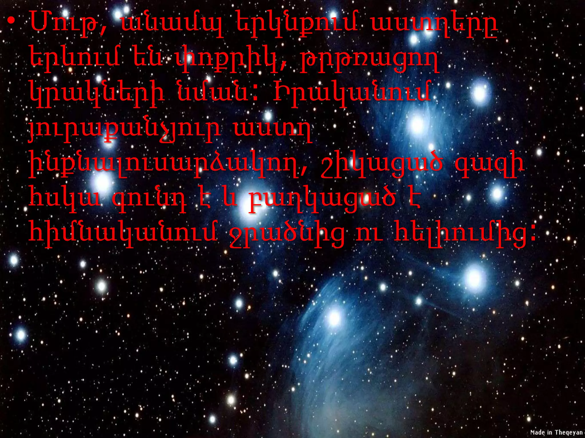 • Մութ, անամպերկնքում աստղերը