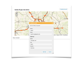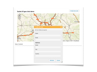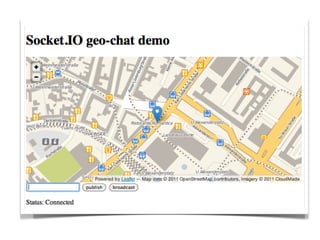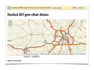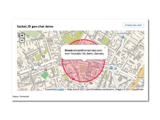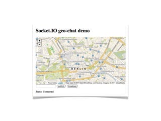 The document provides an agenda for an event on Async & RT Geo apps with Node.js. It includes sessions on techniques for distributed map tile generation using Mapnik & Node.js, the state of GeoCouch, and the new GeoData tool set with CouchDB and NodeJS. By the end of the event, attendees will learn about Node.js, how to write and deploy Node.js servers, Coffeescript, the Geostack for Node.js, and how to write and deploy a real-time geo application. The document encourages building something "useless but cool" to demonstrate skills learned.