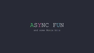1. The document discusses asynchrony and the Monix library for Scala. It introduces the concept of asynchronous computations using the type Async and describes how Monix implements asynchronous tasks using the Task type. It shows examples of composing Task values to run asynchronous operations sequentially or in parallel.