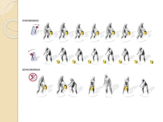 This document discusses asynchronous computer chips as an alternative to traditional synchronous chips. Synchronous chips rely on a central clock, which poses problems like slow speed, wasted energy distributing the clock globally, and high power consumption from the clocks themselves. Asynchronous chips do not use a central clock and instead rely on handshake signals between components to transfer data only when needed. They allow different parts to work at different speeds and immediately pass results. While asynchronous chips have advantages like lower power usage and less noise, challenges remain in interfacing them with synchronous devices and a lack of expertise and tools available. Overall, the document argues that asynchronous chips may help address future issues with clocked designs as chip complexity increases.