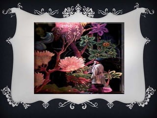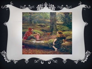 The document outlines the setting design for As You Like It. The forest scenes will feature large tree props and colorful floral drops to portray an escape from the enclosed palace. The palace set will be small with luxurious but enclosed decor to show it is not a place of peace. Both sets must coordinate visually through lighting, costumes, and characters to create a cohesive story while establishing the forest as a place of freedom versus the restrictive palace. The design aims to immerse audiences as if they are experiencing the story firsthand.