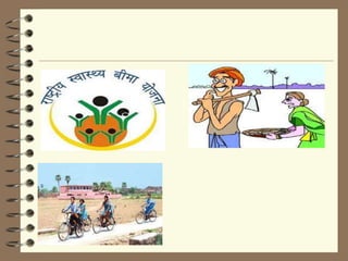 The document discusses implementing an "at risk approach" to population programs and policies in India. It defines risk and outlines how to identify populations at risk by considering biological, physiological, sociocultural, and other factors. The key objectives are to illustrate how to define at-risk groups, impart knowledge on common elements of population policies, and discuss implementation in different community strata. It emphasizes targeting programs to at-risk families and individuals through measures like the Janani Suraksha Yojana, Mamta scheme, and Rashtriya Swasthya Bima Yojana.