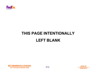 The document provides information about the flight control surfaces and systems for the A300/A310 aircraft. It describes the primary and secondary flight control surfaces that provide roll, pitch, yaw and trim control. These include ailerons, elevators, rudder, flaps, slats and spoilers. It also discusses the three independent hydraulic systems that provide power to the flight controls and can operate the aircraft with two systems failed. Servos, cables, rods and computers are involved in the mechanical and electrical control of the surfaces from the flight deck.