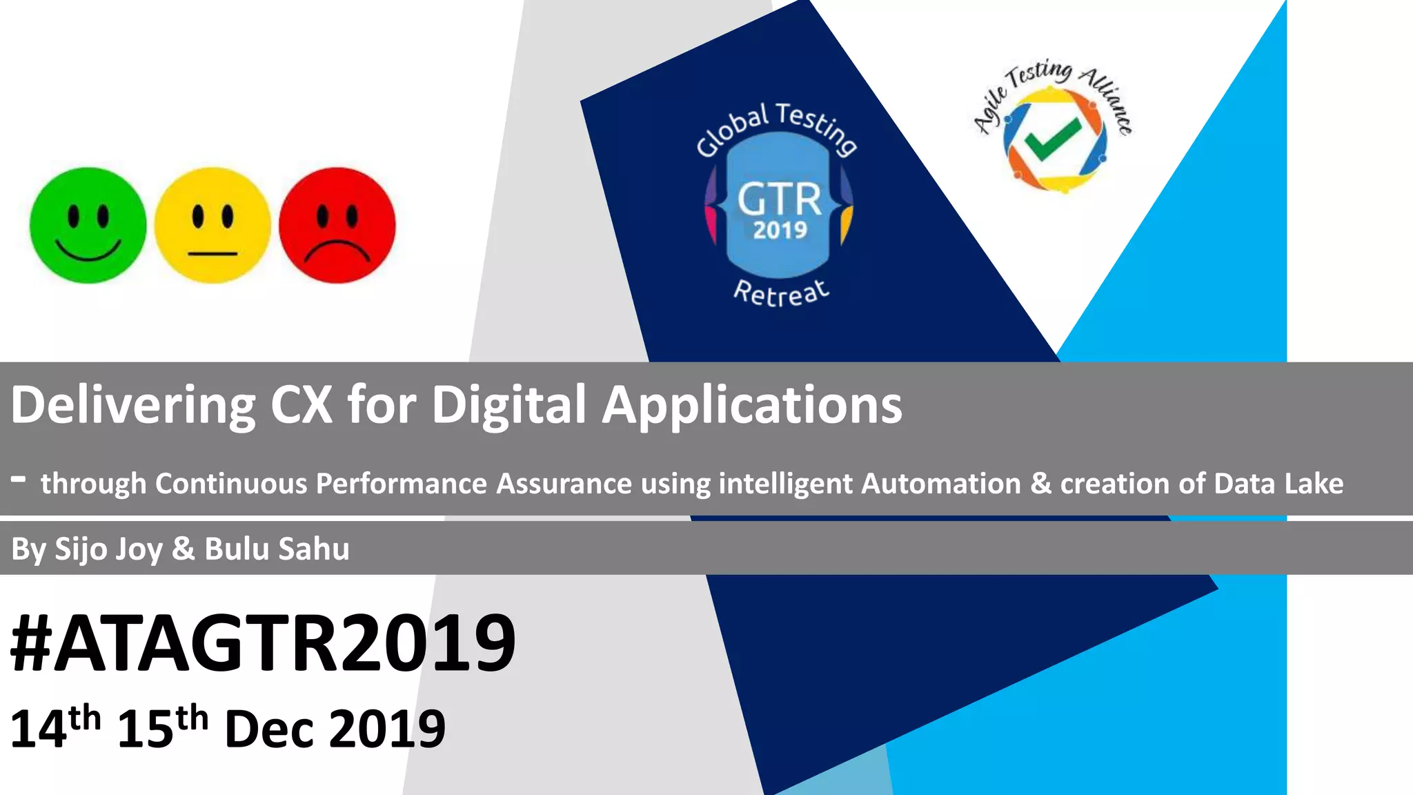 The document discusses the delivery of customer experience for digital applications through performance assurance using intelligent automation and the creation of a data lake. It highlights various challenges in performance testing, such as coverage, time, and data analytics, and proposes solutions like cloud farms and advanced testing methodologies. Furthermore, it emphasizes the importance of tools and real-time analytics in enhancing application performance and user experience.