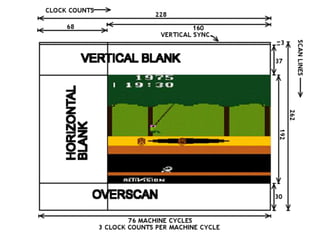 The document discusses programming the Atari VCS, highlighting its limited resources such as 128 bytes of RAM and a basic 6507 CPU. It provides assembly code examples for designing a playfield and emphasizes the intellectual challenge and educational value of working with such constraints. The author suggests that overcoming these limitations can lead to creativity in game design.