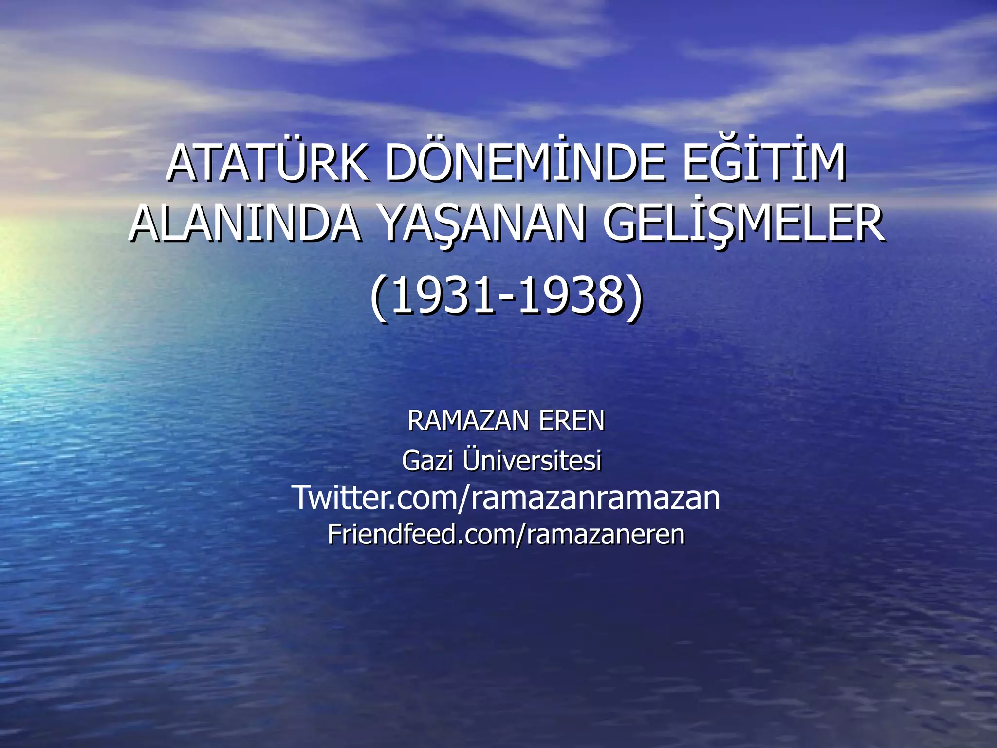 ATATÜRK DÖNEMİNDE EĞİTİMALANINDA YAŞANAN GELİŞMELER (1931-1938) RAMAZAN EREN Gazi Üniversitesi Twitter.com/ramazanramazan Friendfeed.com/ramazaneren