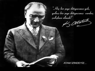 SONUÇ Atatürk yenidevlet için yeni bir eğitim felsefesi ve politikası benimsemiş ve eğitimimizde, en zor fakat gerekli atılımları gerçekleştirmeye çalışmıştır. Başöğretmen ünvanıyla Türk eğitimini milli, akılcı, insancıl, çağdaş bir çizgiye taşımıştır. Atatürk’ün geri kalmışlıkla savaşması ve uygarlık yolunda vatanını kalkındırmak için yaptığı devrimler onun eğitimci kişiliğini göstermektedir.