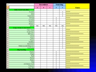 This document summarizes strategies for building an effective proactive sourcing function to fill critical positions. It discusses determining the recruitment charter and synergies between recruiting and sourcing teams. It also covers creating comprehensive passive and active candidate sourcing channel strategies, and measuring the value of sourcing and recruitment functions.