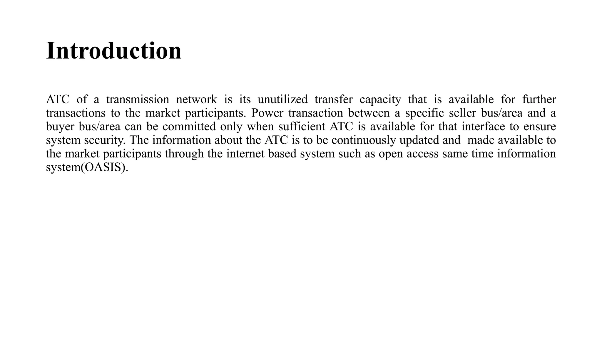 This document discusses methods for calculating available transfer capability (ATC) in electric power systems. It describes three main categories of ATC determination: 1) methods using multiple load flow and continuation power flow simulations, 2) optimization-based power flow methods, and 3) methods using linear sensitivity factors. For the first method, load flow is run incrementally while checking for violations, and continuation power flow finds the maximum loadability. The second method formulates ATC as an optimization problem. The third method uses distribution factors derived from DC and AC power flow to calculate ATC based on transaction impacts on line flows.
