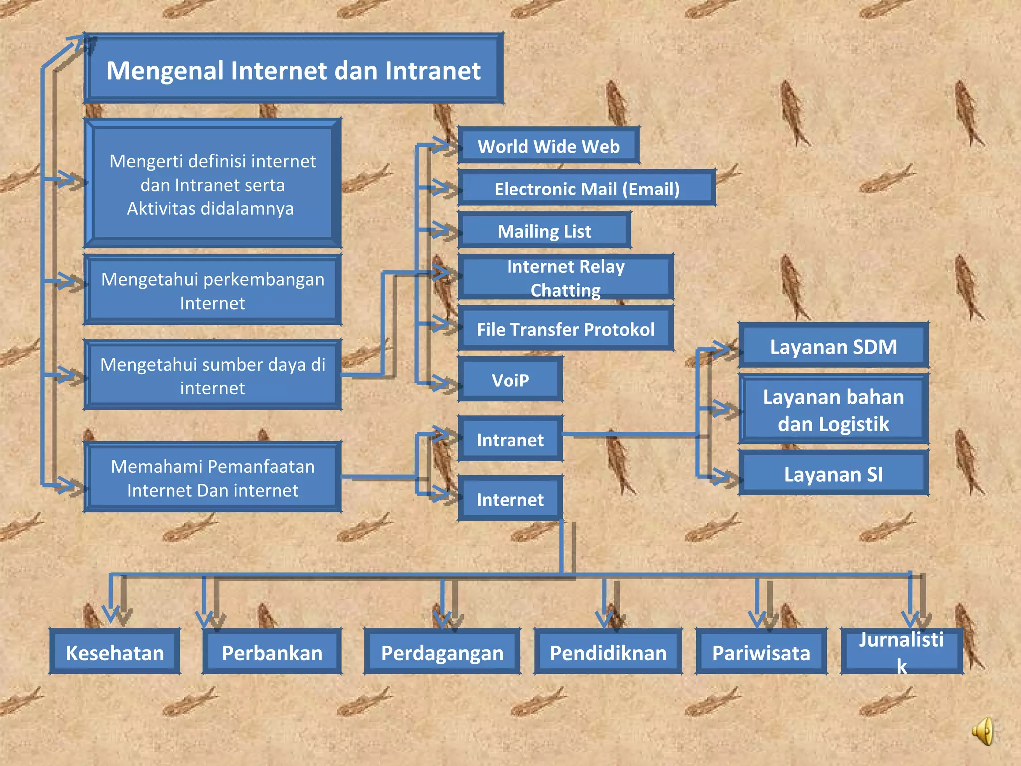 Dokumen ini menjelaskan tentang internet dan intranet, serta berbagai aktivitas dan manfaatnya di berbagai bidang seperti kesehatan, perbankan, perdagangan, pendidikan, pariwisata, dan jurnalistik. Sejarah perkembangan internet juga diuraikan, mulai dari ARPANET hingga munculnya berbagai teknologi komunikasi seperti email, ftp, dan voip. Selain itu, dokumen ini mencakup pemanfaatan intranet untuk berbagai layanan dalam organisasi dan perusahaan, serta informasi penting lainnya.