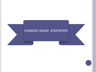 Dokumen tersebut membahas tentang atmosfer dan unsur-unsur cuaca serta iklim. Atmosfer adalah lapisan udara yang menyelubungi bumi dan terdiri dari nitrogen, oksigen, argon, dan gas lainnya. Atmosfer terbagi menjadi beberapa lapisan berdasarkan ketinggian dan suhu. Unsur-unsur cuaca dan iklim meliputi suhu udara, tekanan udara, angin, kelembaban, curah hujan, dan jenis-jenis awan. Iklim merup