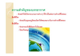 บรรยากาศ (Atmosphere) หมายถึง อากาศทีอยู่ล้อมรอบๆตั