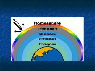 The document discusses the composition and structure of Earth's atmosphere. It covers the following key points: