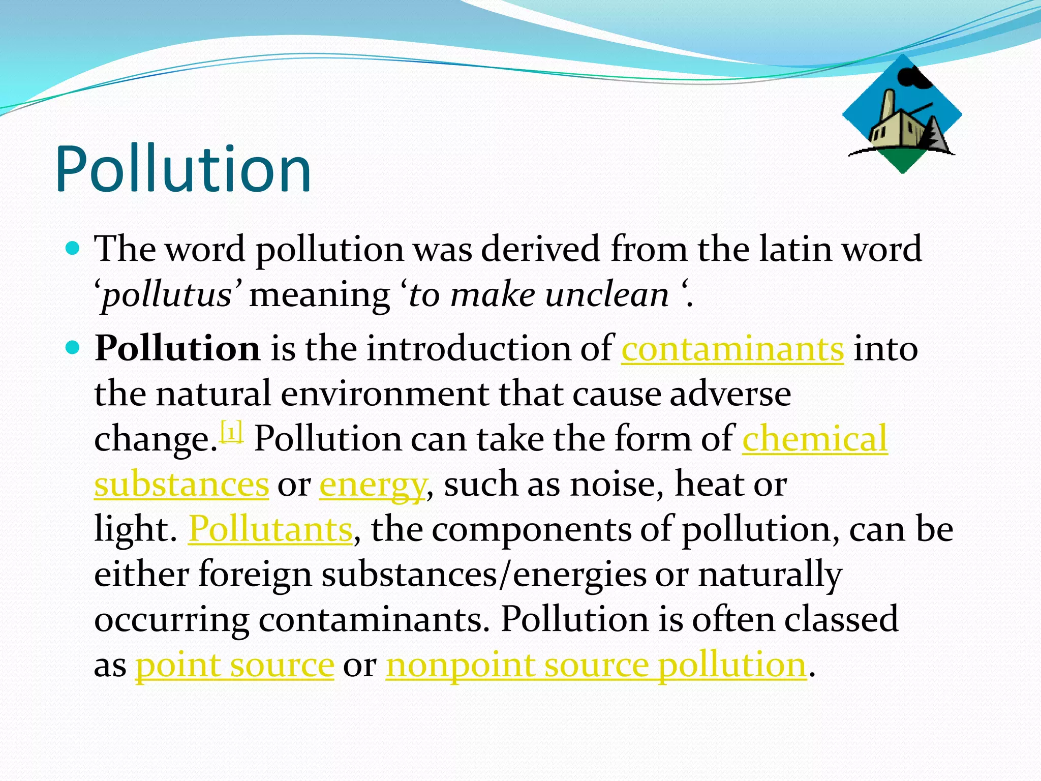 Pollution is the introduction of contaminants into the natural environment that cause adverse changes. Air pollution occurs when harmful substances affect the atmosphere, potentially causing health issues and environmental damage. Air pollutants come from natural sources like wildfires and volcanoes, or human sources such as vehicle emissions, industrial operations, and waste disposal. Air pollution has wide-ranging negative health effects and contributes to issues like acid rain, global warming, and ozone depletion. Efforts to reduce air pollution include emissions controls, land use planning, and environmental impact assessments.