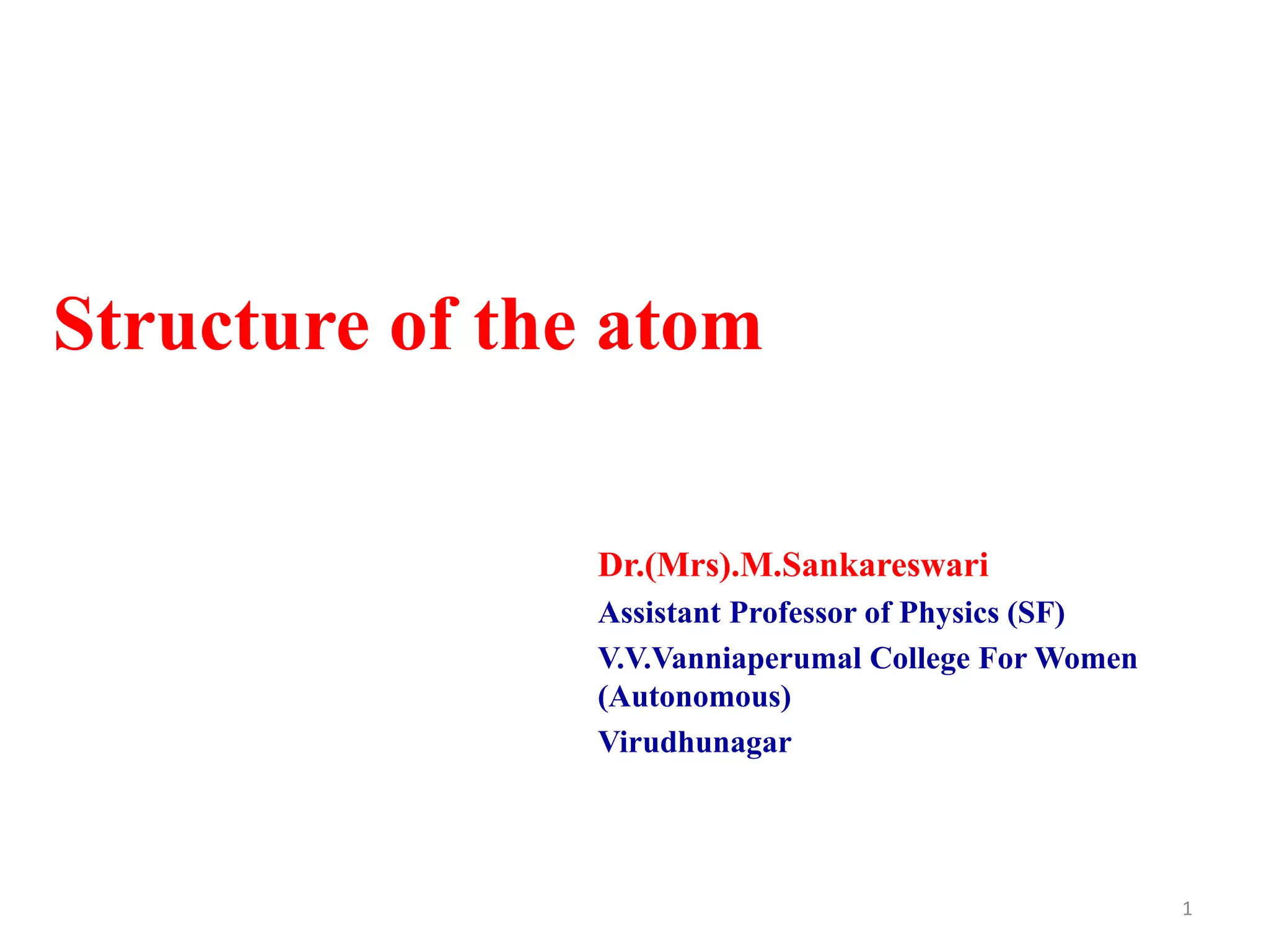 The document discusses several models of atomic structure: