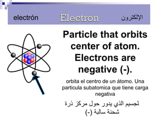 الذرة هي أصغر وحدة من العنصر، وتتكون من إلكترونات سلبية تدور حول مركز الذرة، ونيوترونات محايدة وبروتونات إيجابية في النواة. تحتوي الذرة على مستويات طاقة حيث تدور الإلكترونات، ويعتمد العدد الذري للعُنصر على عدد البروتونات. يتم تنظيم العناصر في الجدول الدوري حسب مستويات الطاقة وعدد الإلكترونات التكافلية.