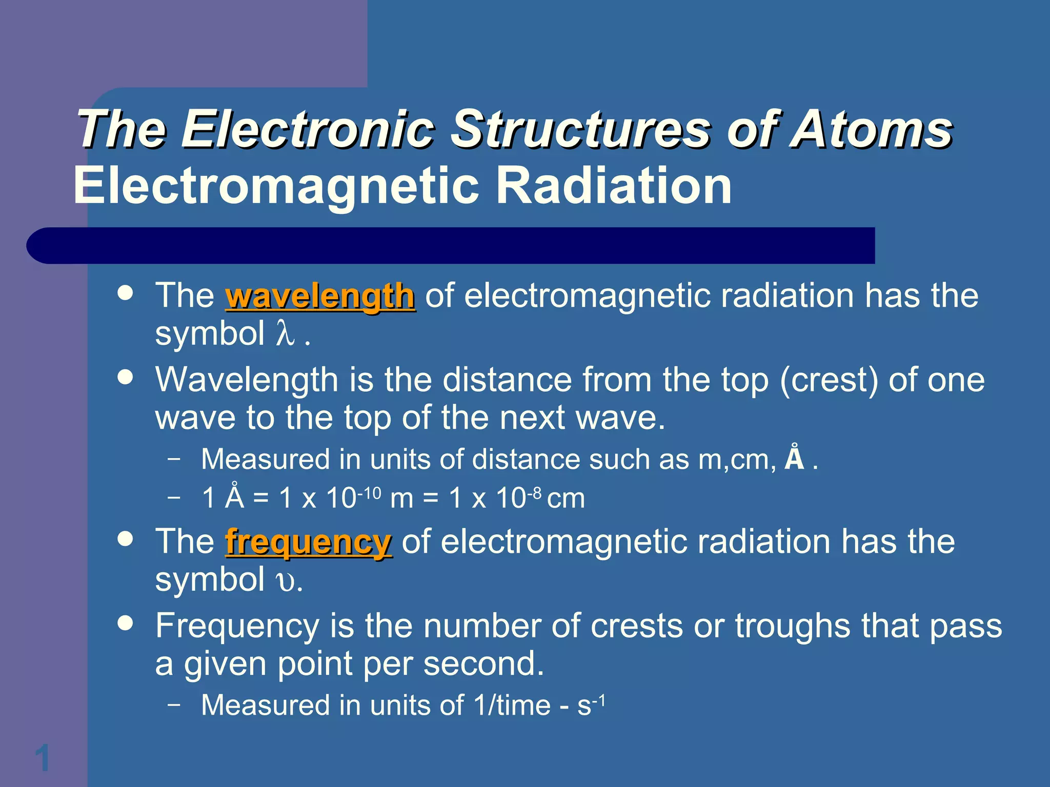 1. It defines wavelength and frequency of electromagnetic radiation and describes the relationship between them.