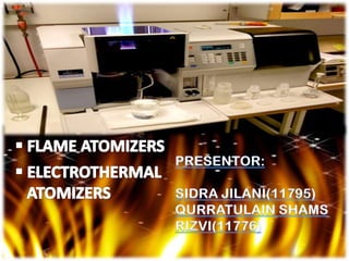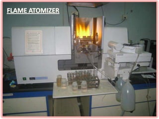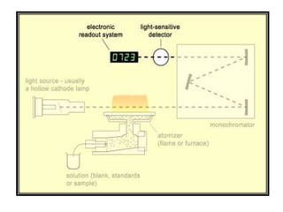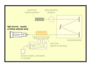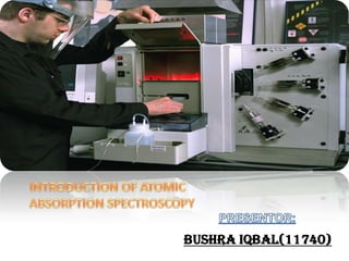 The document discusses atomic absorption spectroscopy. It describes key events in the development of spectroscopy, including Newton's experiments with light dispersion in 1665 and Kirchoff and Bunsen's work establishing spectroscopy in 1859. The document also summarizes the basic principles of atomic absorption spectroscopy, the types of spectra, instrumentation involved, and sample preparation methods.