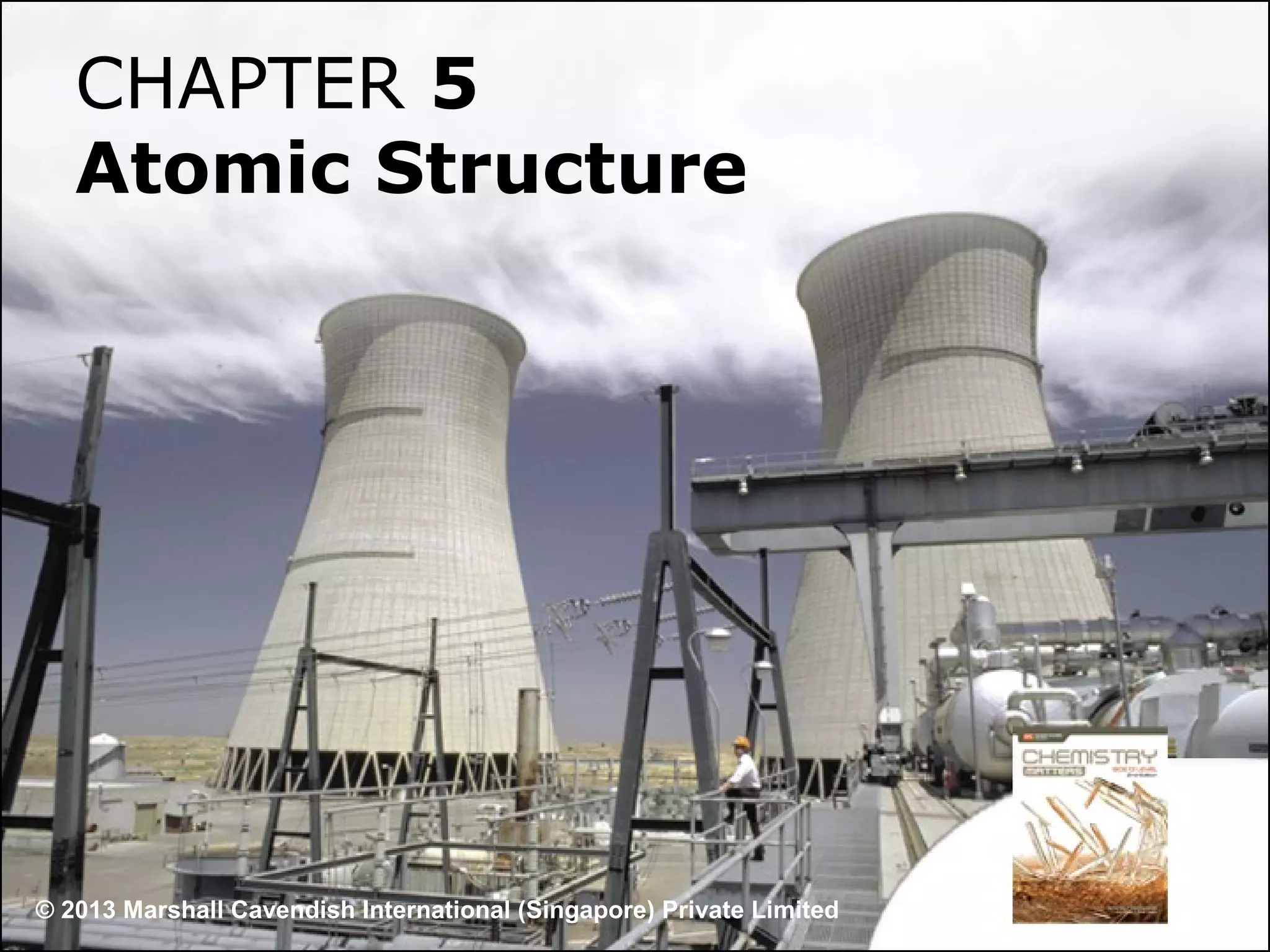 This chapter discusses atomic structure and is divided into four sections. Section 5.1 describes the components of an atom, including protons, neutrons, and electrons, and their relative masses and charges. Section 5.2 defines proton number and nucleon number, and how they relate to the number of protons, neutrons, and electrons in an atom. Section 5.3 explains that isotopes are atoms of the same element with different numbers of neutrons. Section 5.4 discusses how electrons are arranged in shells or energy levels around the atomic nucleus.