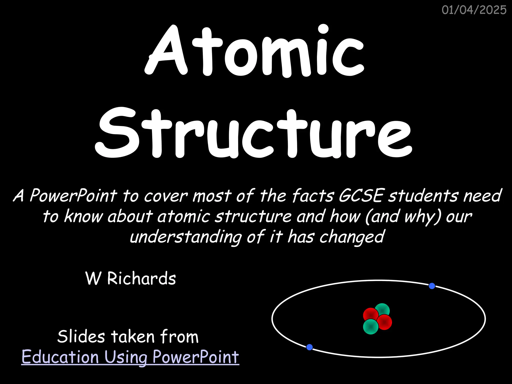 Atoms consist of an extremely small, positively charged nucleus surrounded by a cloud of negatively charged electrons. Although typically the nucleus is less than one ten-thousandth the size of the atom, the nucleus contains more that 99.9% of the mass of the atom.
