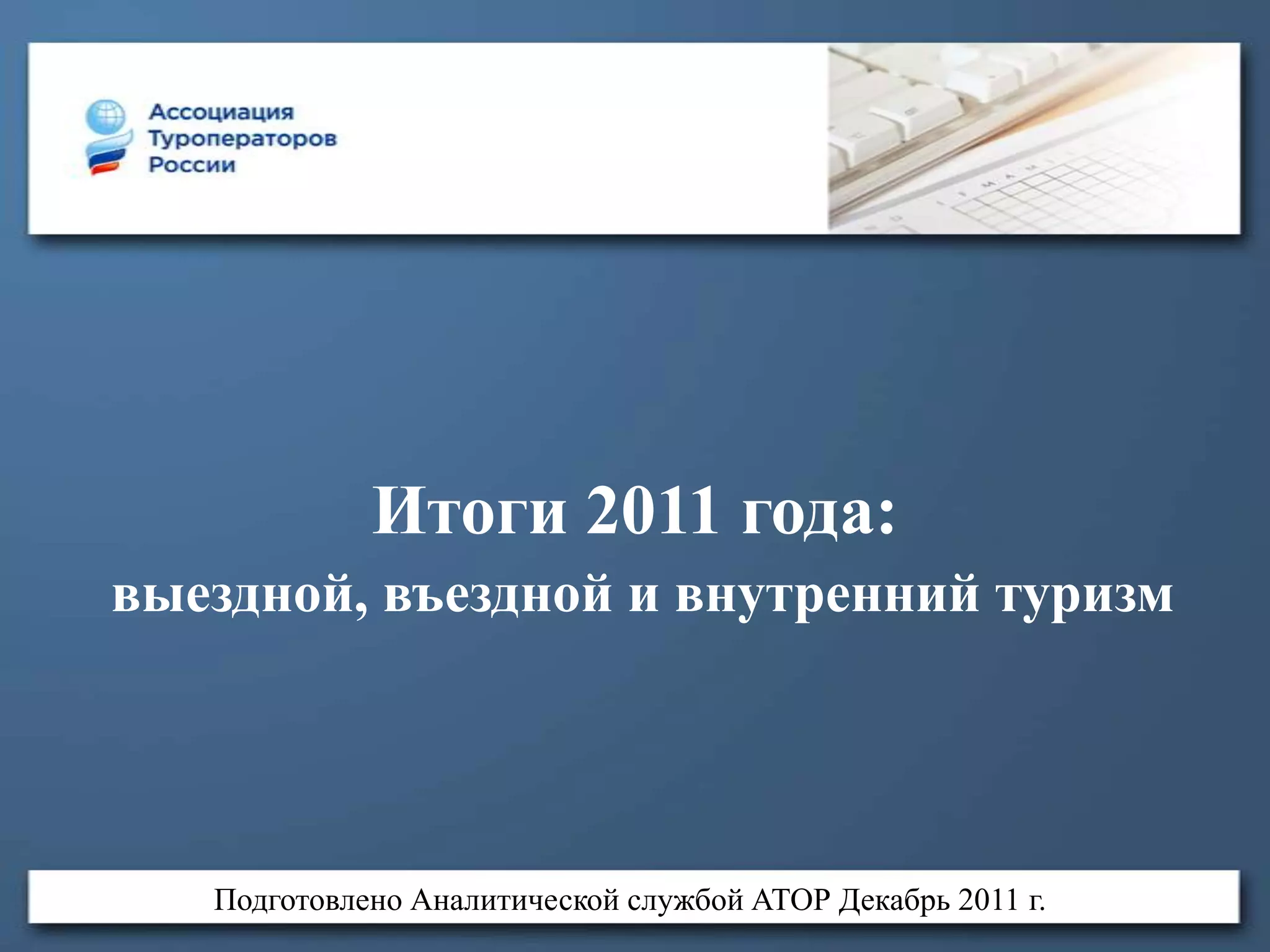 Документ представляет аналитику по выездному, въездному и внутреннему туризму России в 2011 году, отражая динамику спроса на популярных направлениях и причины изменений. Выездной туризм показал рост, особенно в таких странах как Турция, Греция и Испания, в то время как Египет столкнулся с падением спроса из-за политической нестабильности. Внутренний туризм также отметил изменения в предпочтениях, с ожидаемым увеличением потока в Сочи и других регионах.